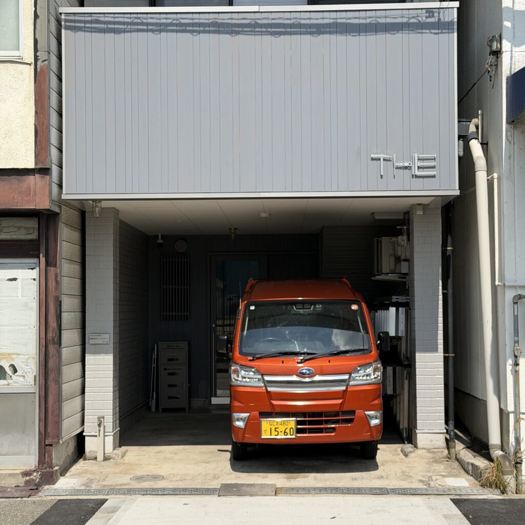 小さな建物に、小さなオフィスと小さな作業場 兼 倉庫 兼 車庫がギューッと詰まってます。